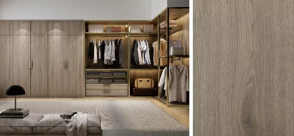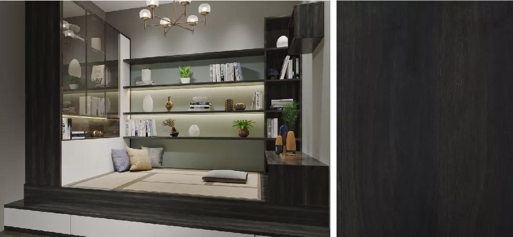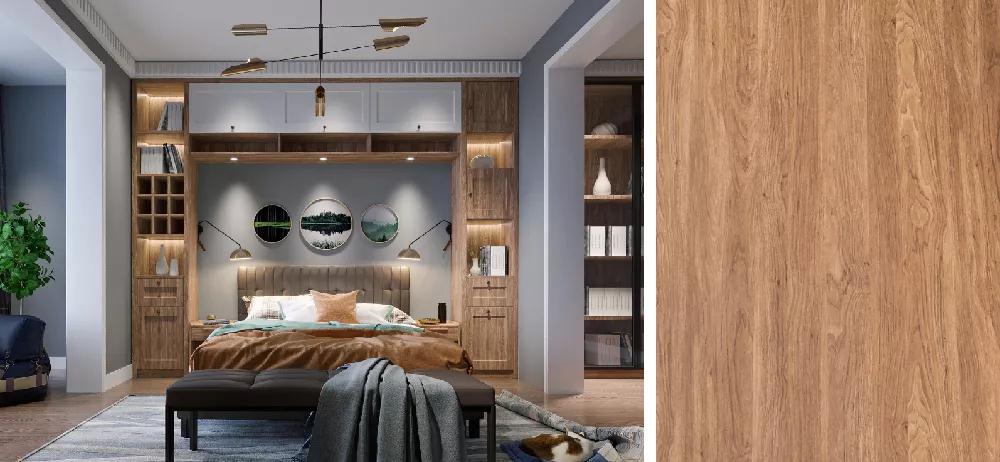 鵬鴻板材深刻詮釋原木自然屬性,德國(guó)進(jìn)口0°度鋼板與超亞光膚感壓貼工藝,精確處理光的視覺影響,面層溫潤(rùn)、光澤內(nèi)斂,真實(shí)呈現(xiàn)原木天然肌理。